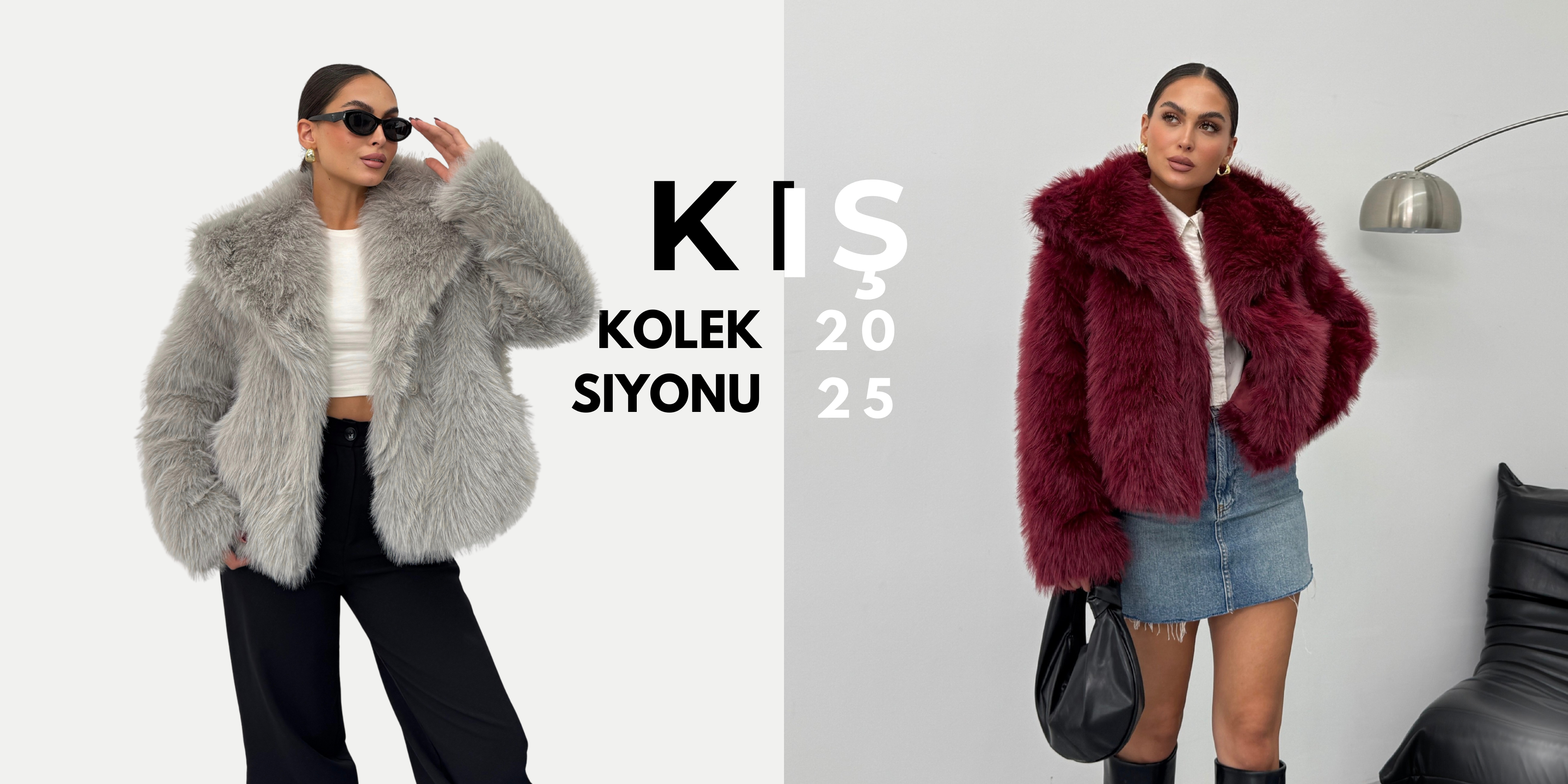 Kadın Mont İçi Kürklü Lamine Kruvaze Fermuarlı Cepli Oversize Ceket