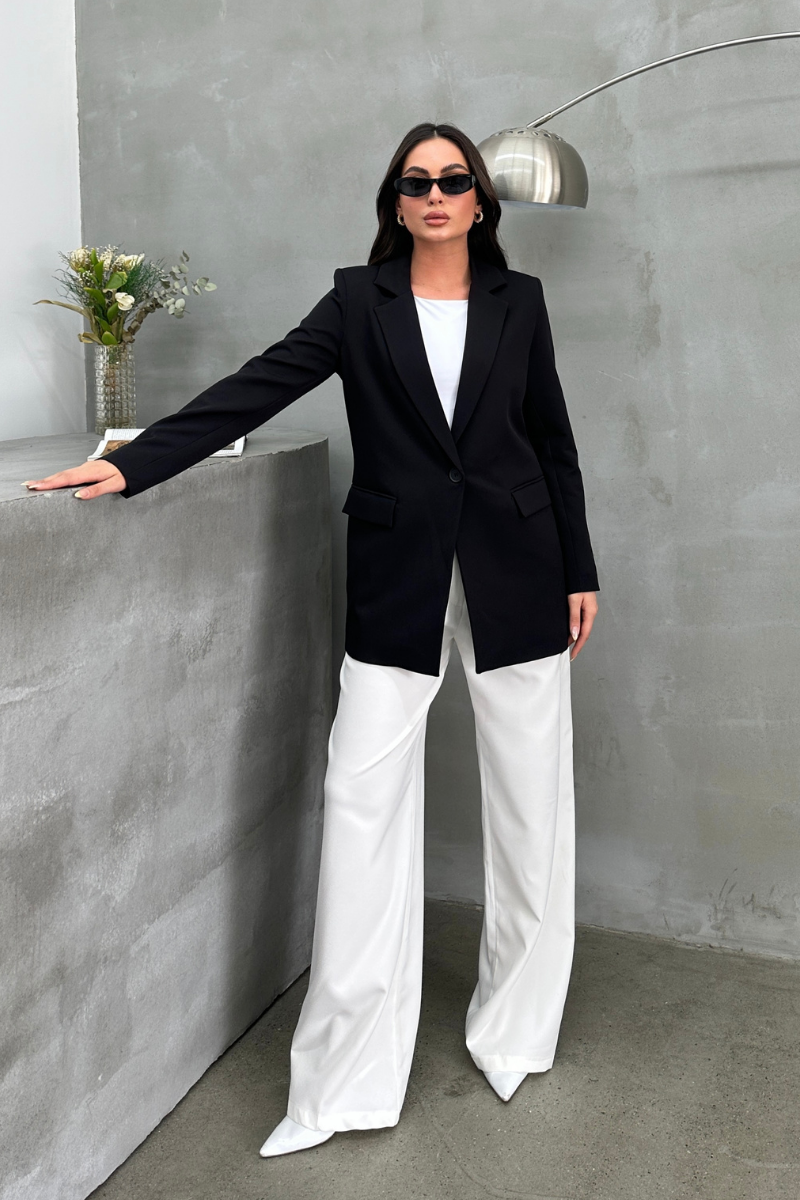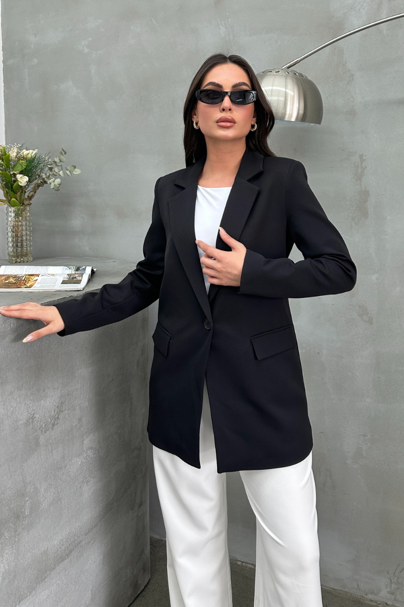 Modern kesimi ve net hatlarıyla öne çıkan bu blazer ceket, güçlü ve stil sahibi bir görünüm arayanların favorisi olacak. Rahat kalıbı sayesinde gün boyu konfor sunarken, tek düğmeli yapısıyla klasik şıklığı modern detaylarla buluşturuyor. İster ofis kombinlerinde ister özel günlerde fark yaratmak isteyenler için ideal bir parça.