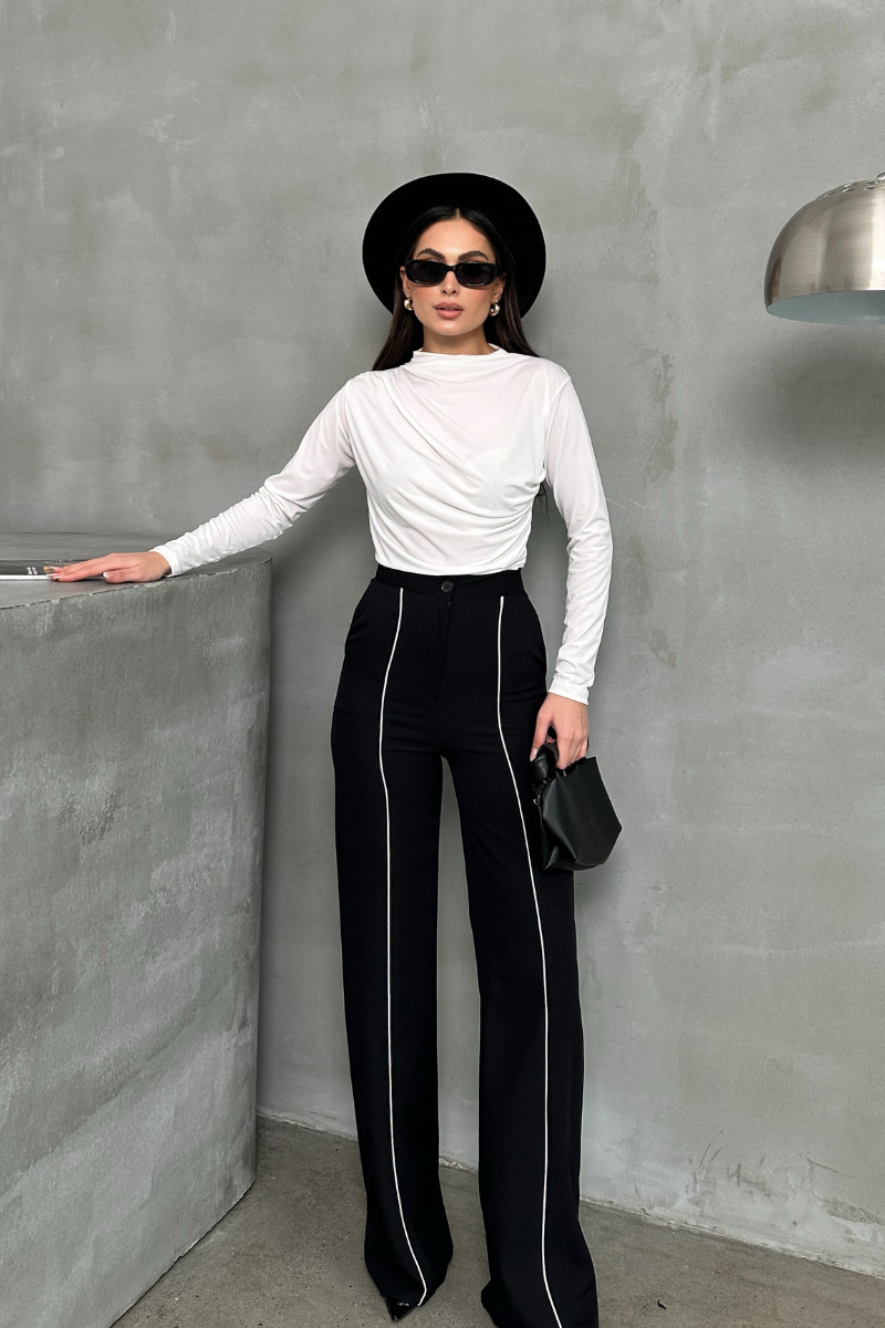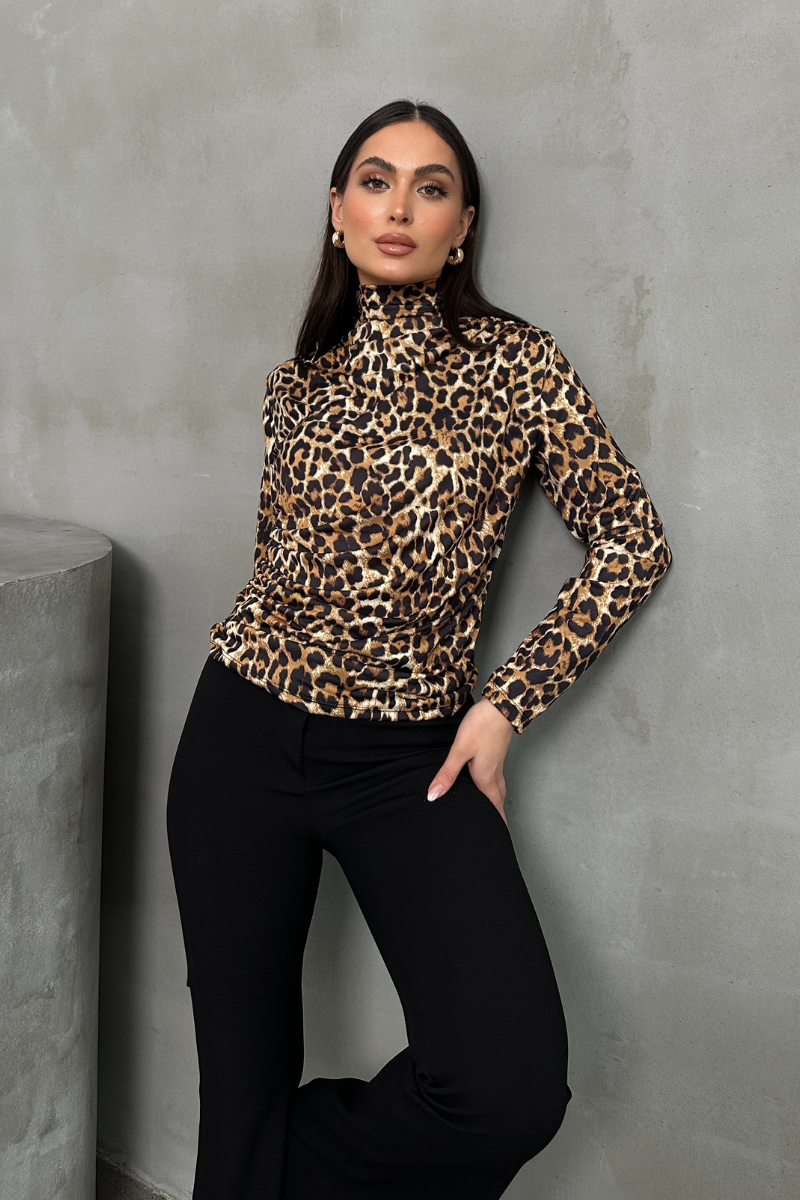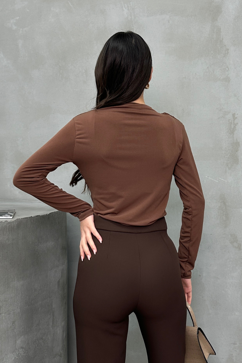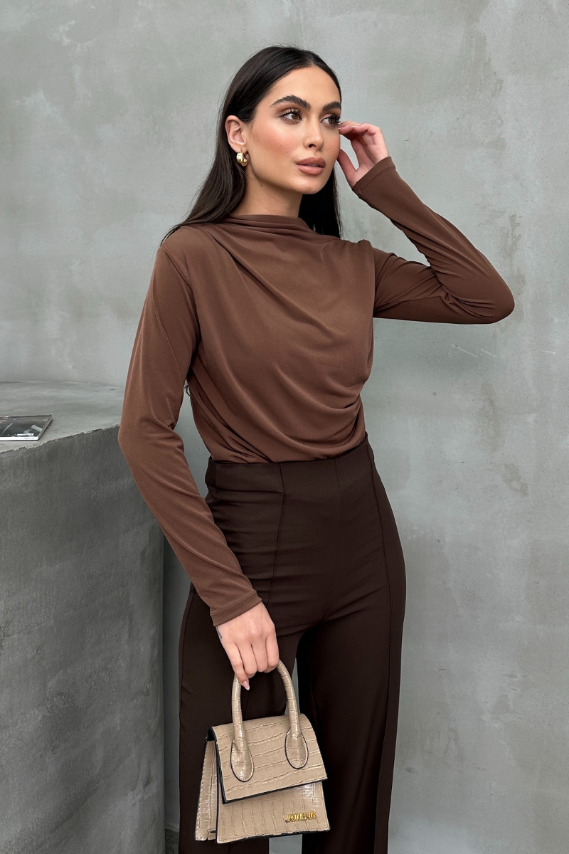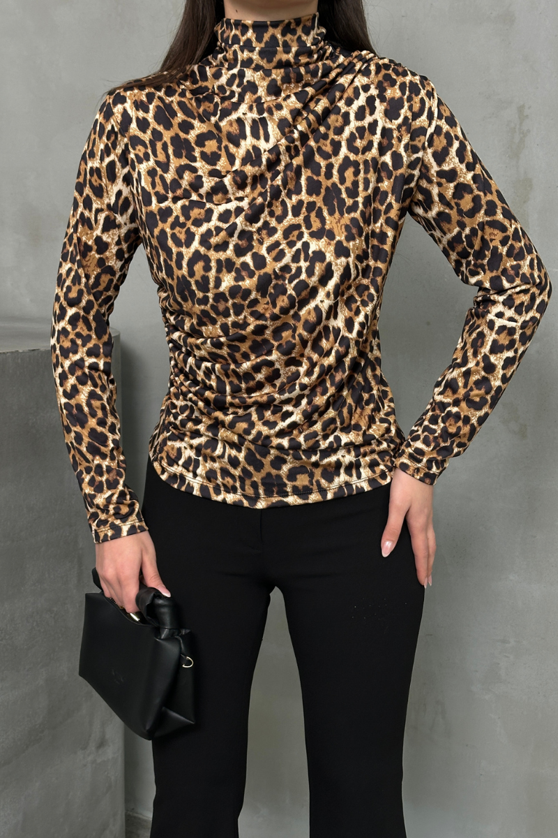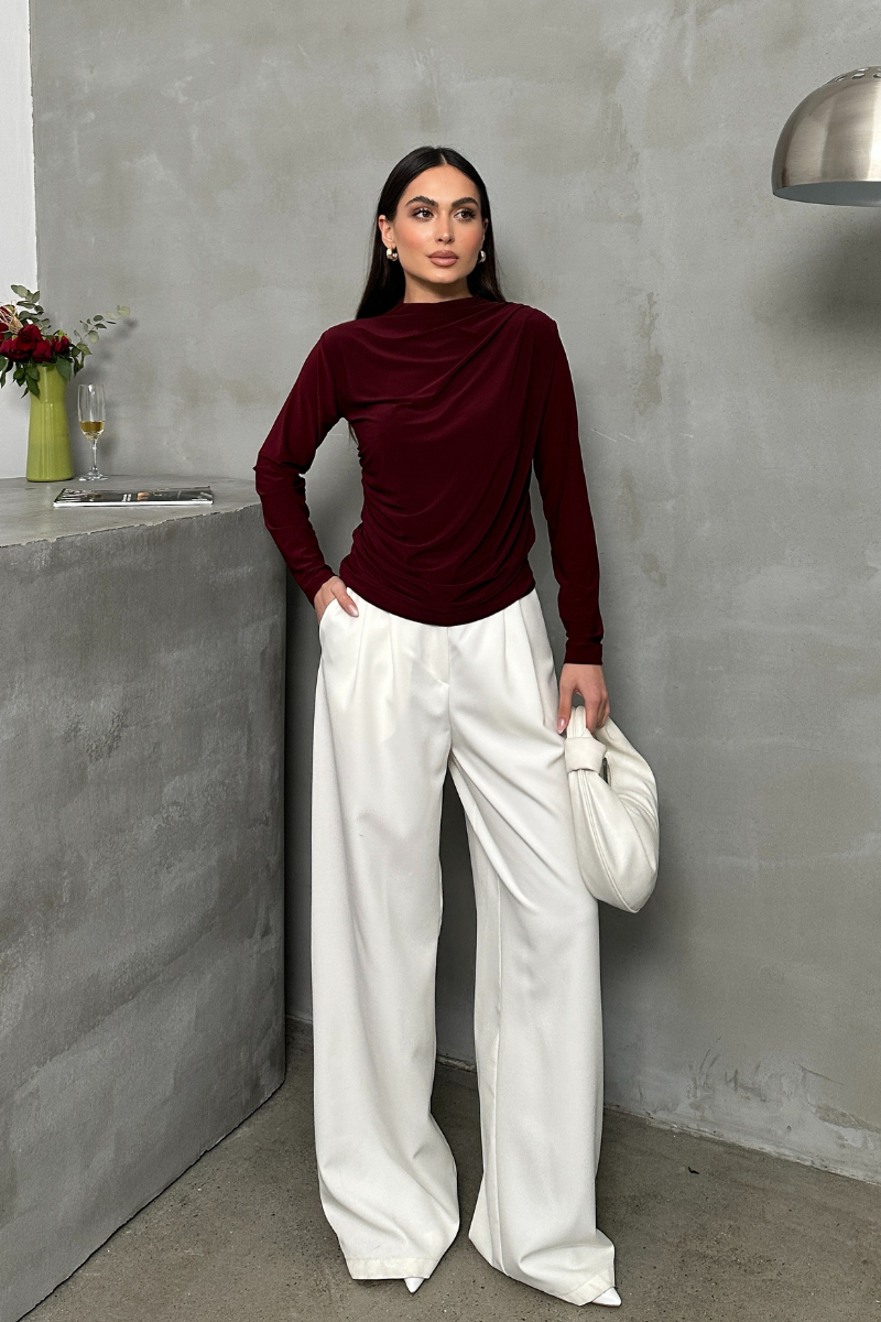 Zarif ve şık duruşuyla öne çıkan bu bluz, asimetrik drape detaylarıyla modern bir hava katıyor. Yumuşak ve esnek kumaşı sayesinde hem rahat hem de vücuda uyum sağlayan bir kesime sahiptir. Günlük kombinlerinizde şıklığı yakalamak veya özel davetlerde sofistike bir stil oluşturmak için ideal bir seçim!