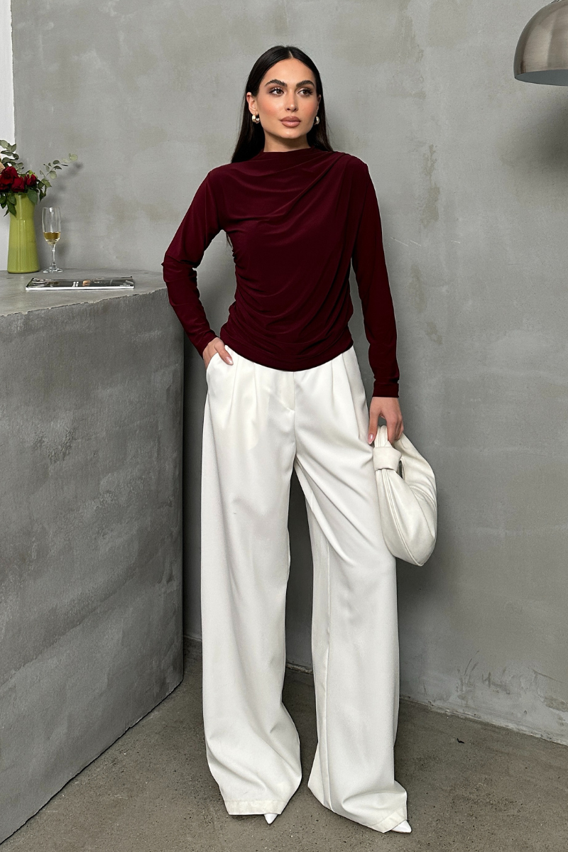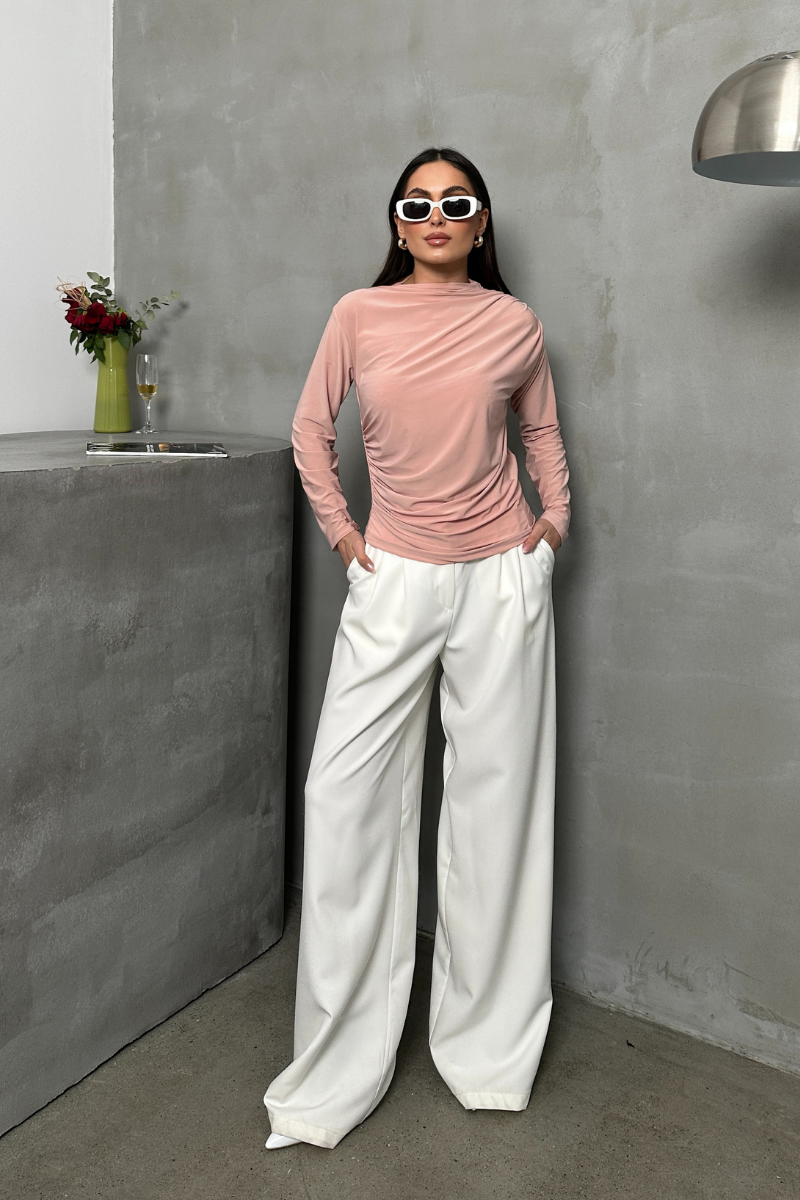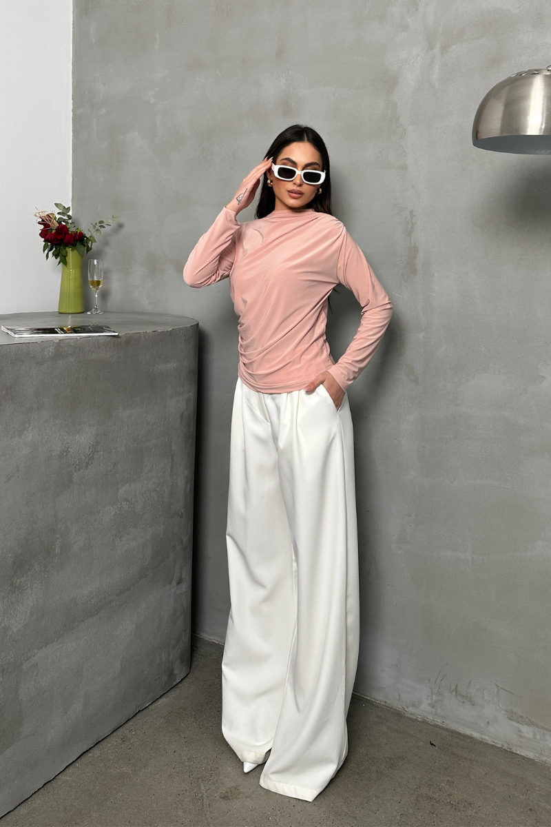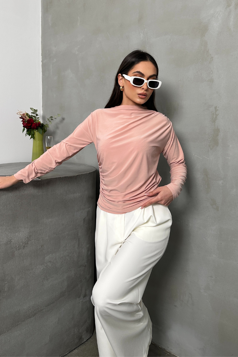 Kadın Bluz Drapeli Uzun Kollu Sandy Kumaş