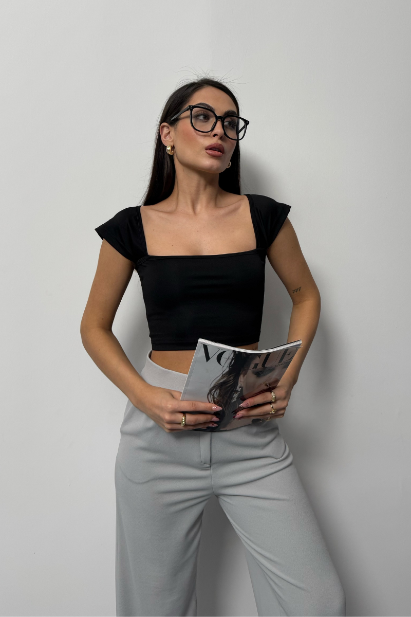 Kadın Crop Tişört Kısa Kollu Kare Yaka Basic Tişört