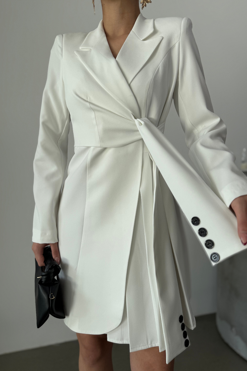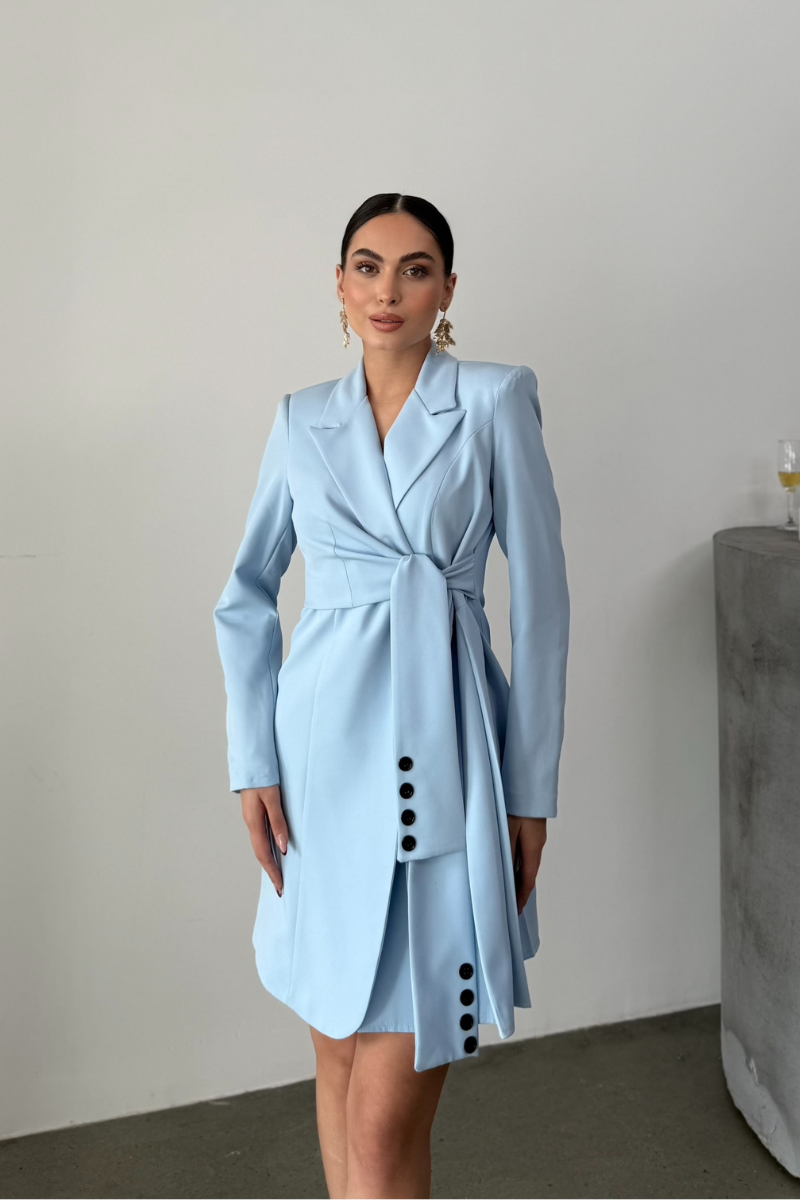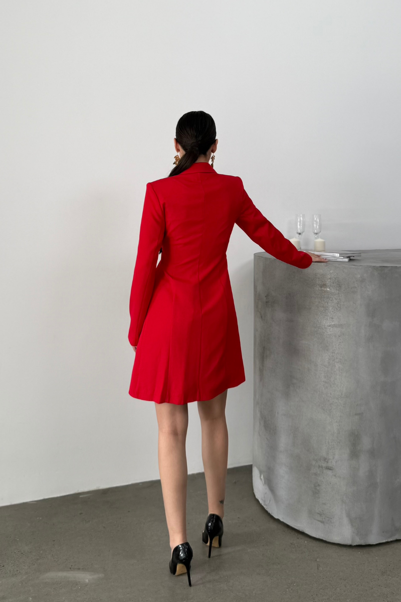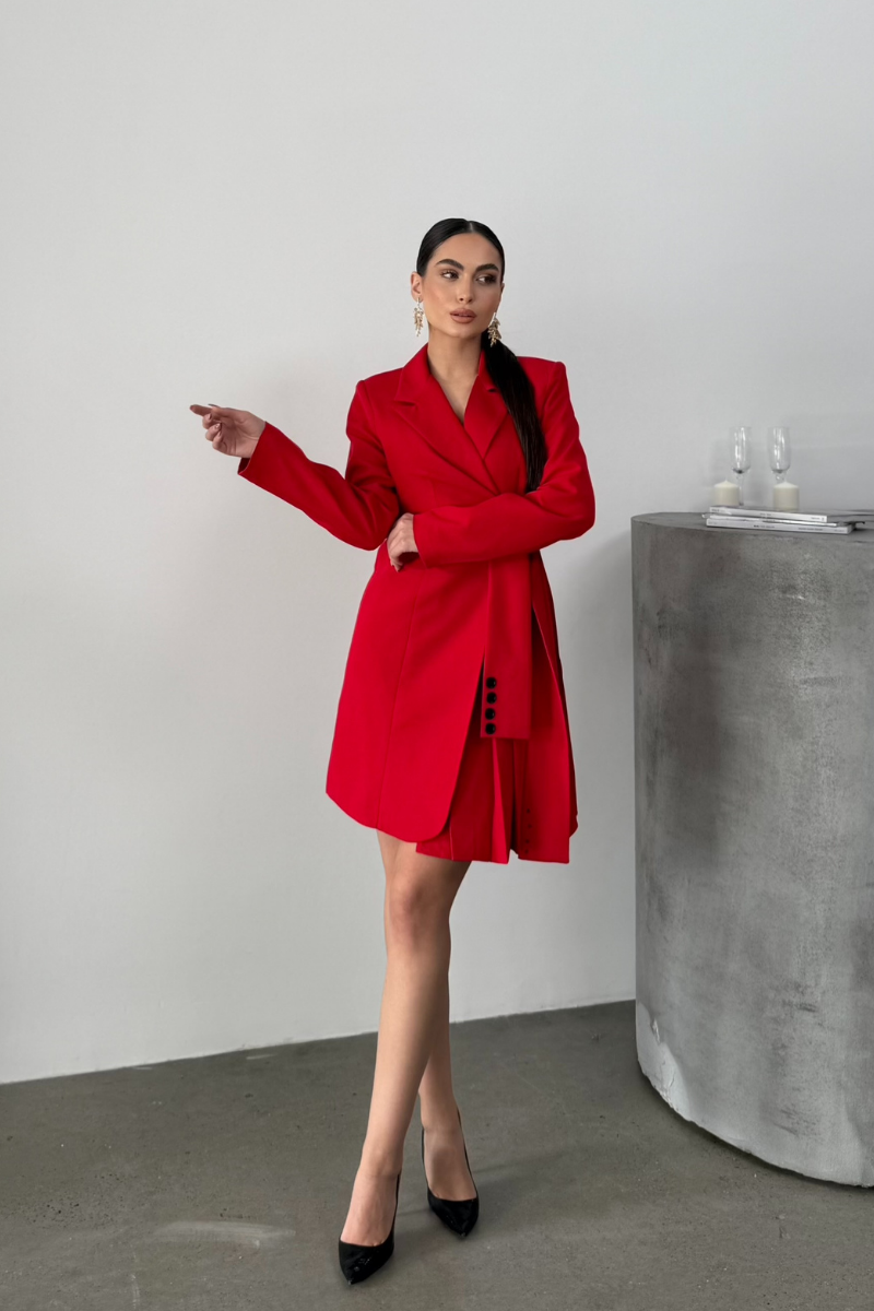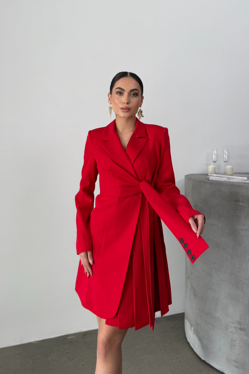 Şıklığı ve zarafeti bir arada sunan bu ceket elbise, özel günlerde ve davetlerde göz alıcı bir seçenek olacak.; Uzun kollu ve vatkalı olan elbise, feminen bir siluet sunar.; Üst kısmındaki ceket detayı ile formel bir görünüm sağlarken, alt kısmındaki kuşaklı ve pileli etek detayıyla da feminenliği ön plana çıkarır.; Çeşitli renk seçenekleriyle her tarza ve zevke hitap eder.; Gardırobunuzun özel parçalarından biri olacak bu elbiseyi keşfedin ve özel günlerinizde şıklığınızı tamamlayın.;
