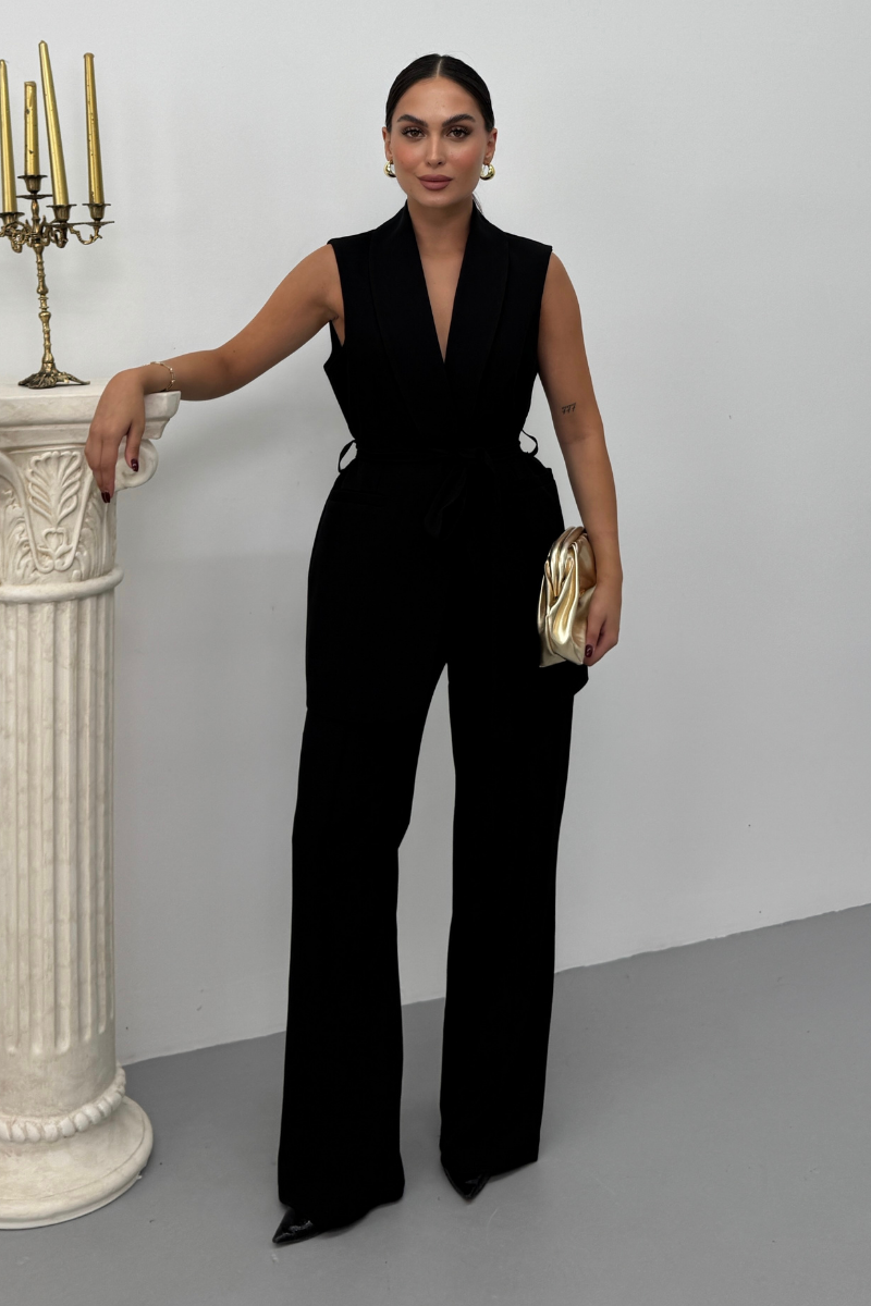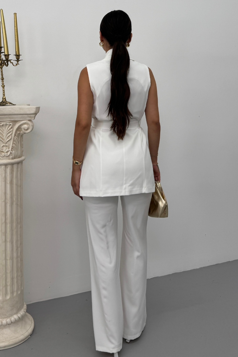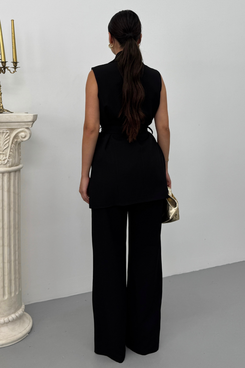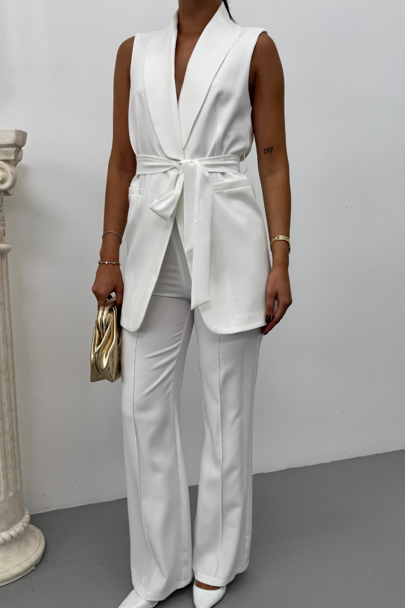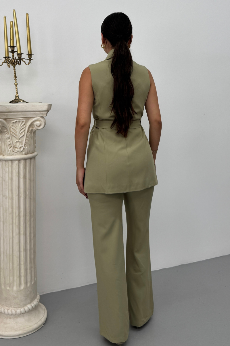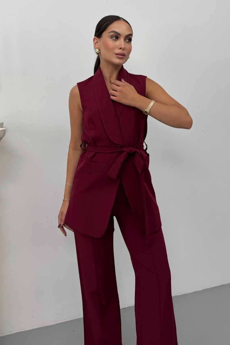 Kadın İkili Alt Üst Takım Şık Kuşaklı Cep Detaylı Yelek Pantolon Takım