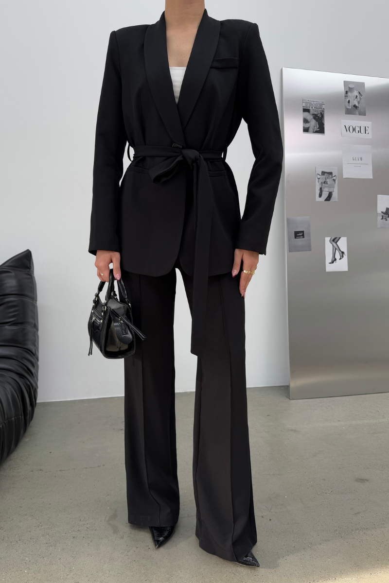Kadın İkili Kuşaklı Blazer Ceket Pantolon Takım