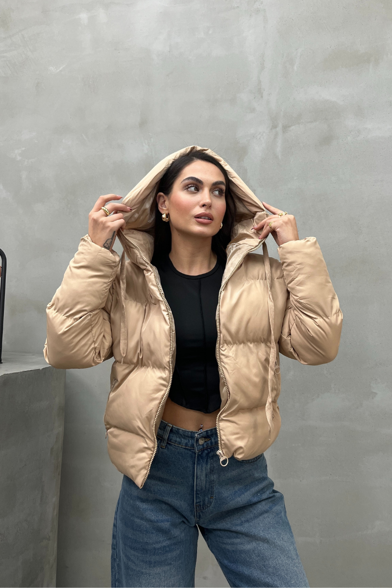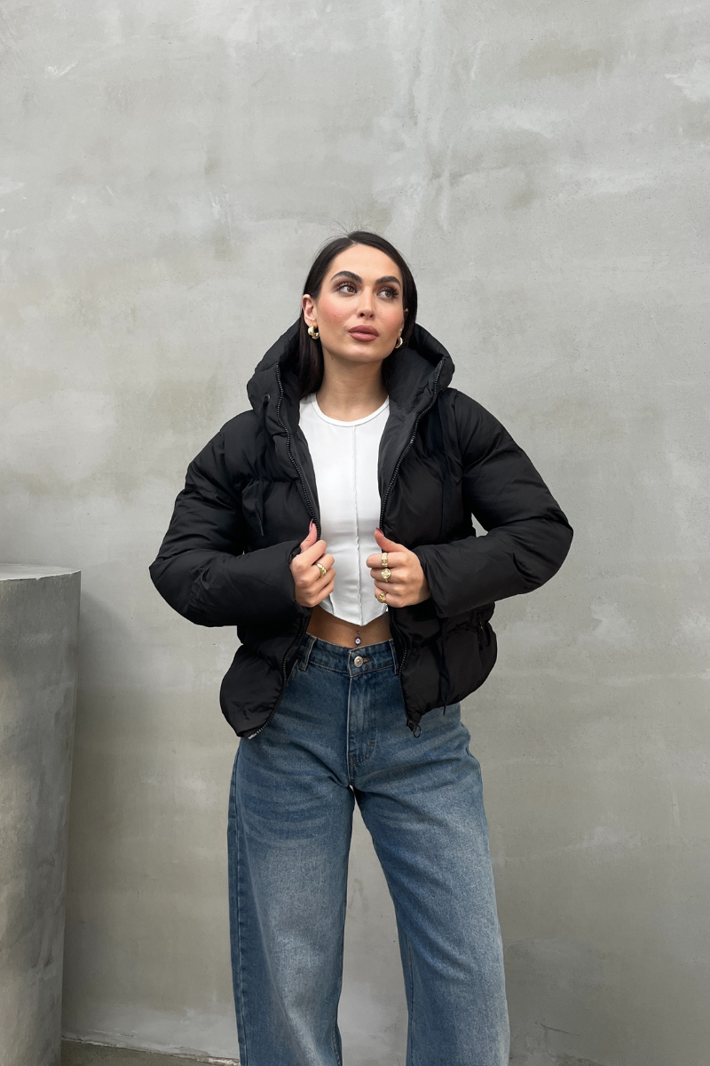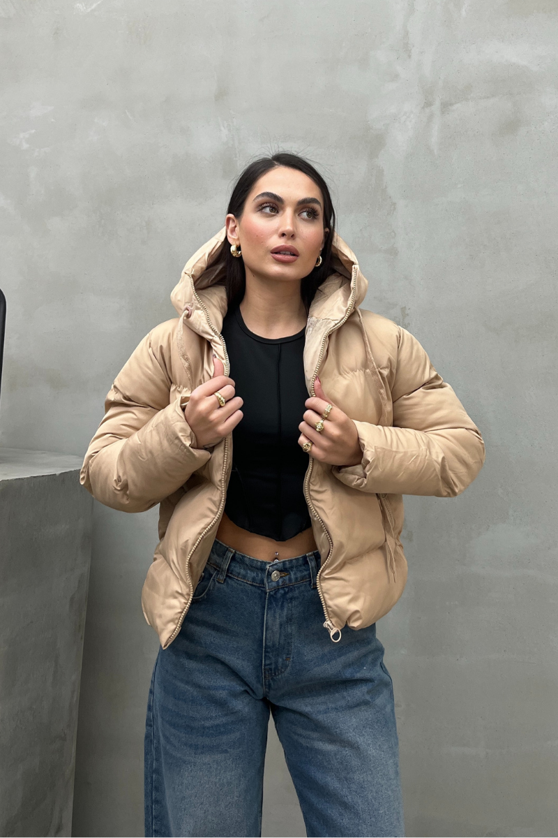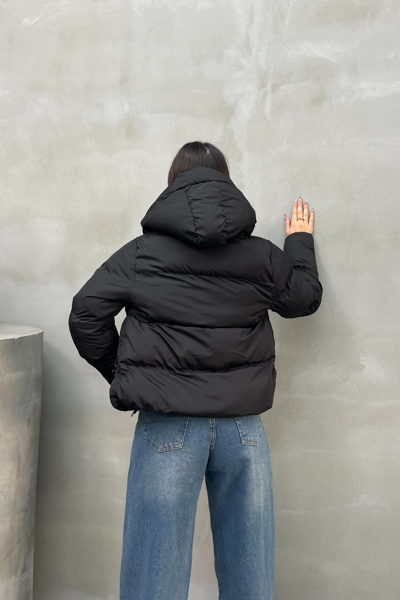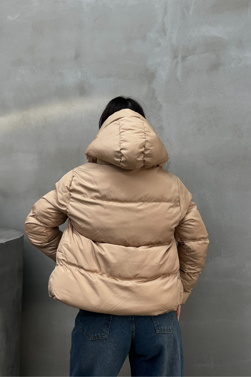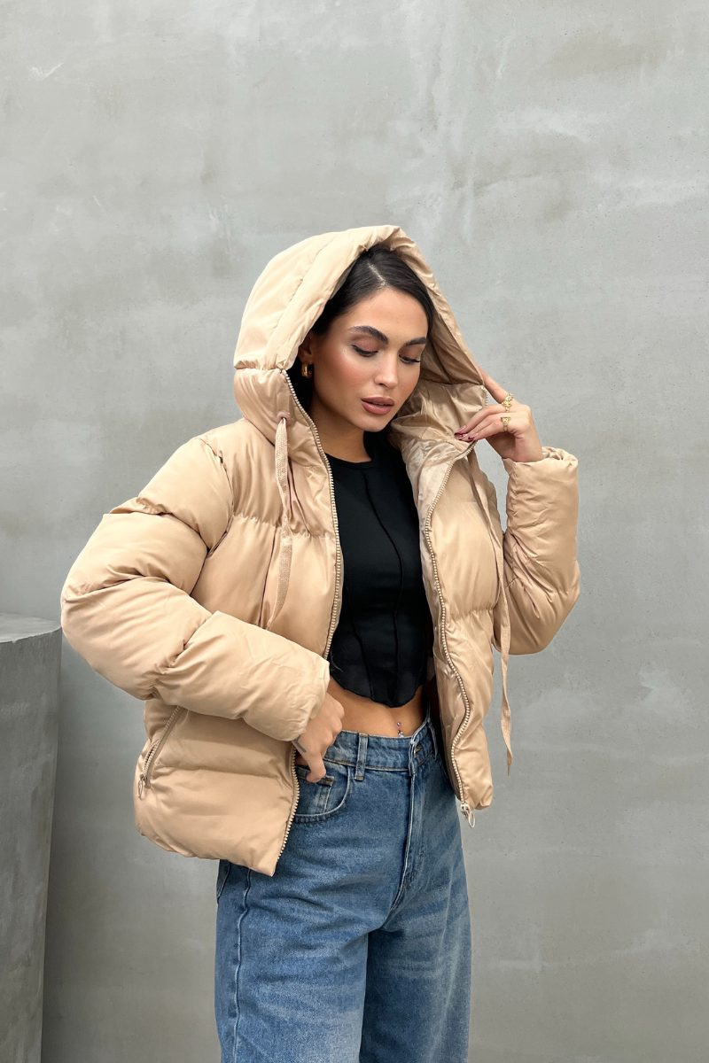 Kadın Kapüşonlu Cepli Kısa Şişme Mont